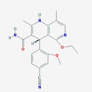 | InChI | InChI=1S/C21H22N4O3/c1-5-28-21-18-17(14-7-6-13(9-22)8-15(14)27-4)16(20(23)26)12(3)25-19(18)11(2)10-24-21/h6-8,10,17,25H,5H2,1-4H3,(H2,23,26) |